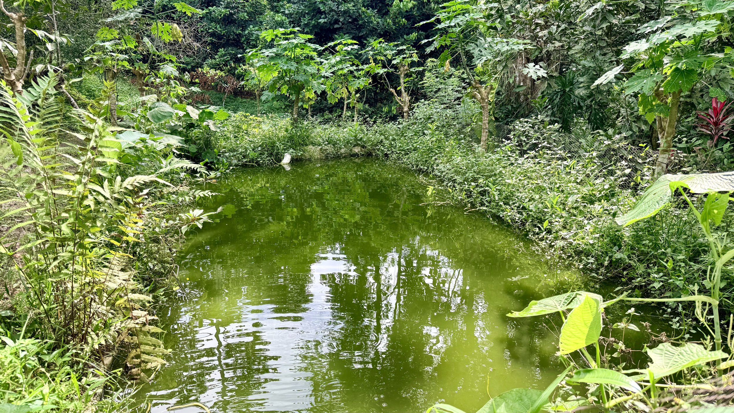 We also keep a small backyard fish pond using an ecological green-water system. Tilapia fish thrive on algae and high-protein leaves—no commercial feed needed— and it’s low input and provides a few fish meals each week.